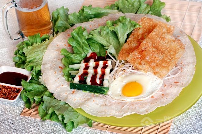 煎餅為漢族主食,以山東為盛,起源甚早。是將五谷雜糧磨成面糊,倒入燒熱的鏊子,再用煎餅筢子攤平烙制而成。煎餅從原料上看,有小麥煎餅、玉米煎餅、米面煎餅、豆面煎餅、高梁面煎餅,還有地瓜面煎餅。按照地區(qū)特色來劃分,有臨沂煎餅,嵐山煎餅,棗莊煎餅,泰山煎餅。