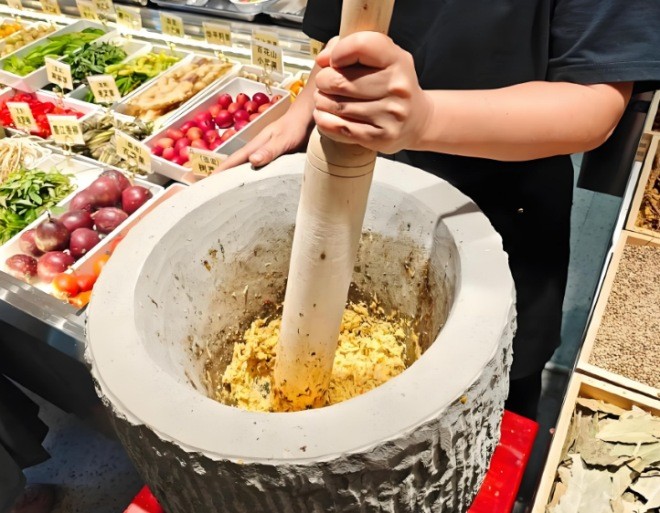 滇南里現(xiàn)春鮮貨火鍋擁有多家加盟店,?現(xiàn)舂佐料系統(tǒng)采用石臼現(xiàn)場舂制滇橄欖、樹番茄、涮涮辣等20+種云南特有山茅野菜,保留食材原始風(fēng)味。??尋甸黃牛肉現(xiàn)點(diǎn)現(xiàn)切,保留肉品纖維感。??無量山走地雞當(dāng)日配送,肉質(zhì)緊實(shí)帶自然甘甜。云南特色鍋底的酸辣鮮香、創(chuàng)意調(diào)料的山野風(fēng)味、新鮮牛肉的細(xì)嫩多汁,每一口都像在版納的雨林里吃了場火鍋盛宴。云南特色鍋底一上桌就把人香迷糊了!