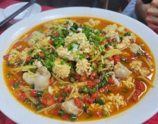 鄧雙雙自貢燒烤鹽幫菜現點現炒的干煸牛半壯太香了,牛肉浸滿調料味,越嚼越香,不柴不塞牙。燒烤里巴掌大生蠔很鮮,烤得嫩滑爆汁,一口一個。飄香沸騰魚必點招牌!一端上桌,麻辣鮮香的味道就撲鼻而來。大片的黑魚片嫩滑無比,入口即化,吸收了濃郁的湯汁,辣得過癮,麻得恰到好處,下面還有豆芽和金針菇打底,十分入味!