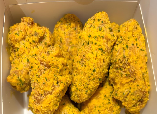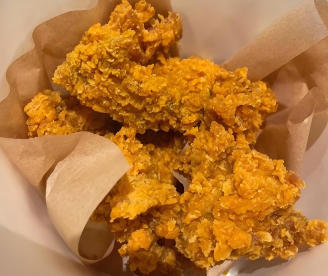 對講雞炸雞除經典香辣、孜然口味外,還推出蒜香醬油、蜂蜜芥末等創新口味,覆蓋南北口味差異。青瓜海鹽味雞柳外酥里嫩,咬下去汁水充盈青瓜的清新混著淡淡海鹽咸香,像把春日菜園搬進炸雞,清爽不膩,吃著特開胃,搭配的年糕、薯條、山藥片也裹滿料,每口都很有層次~胡椒芝士味濃郁胡椒香先沖擊鼻腔,接著芝士的奶香纏綿舌尖,咸香交融超絕!