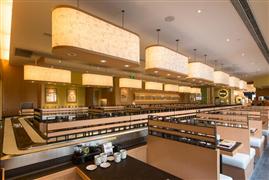回轉壽司毛利率高達60%—70%,是當前餐飲業中獲利較高的餐飲模式,其新鮮自然、健康營養的產品特色,符合當前餐飲市場的發展形勢以及未來的飲食發展趨勢,前景不可估量。