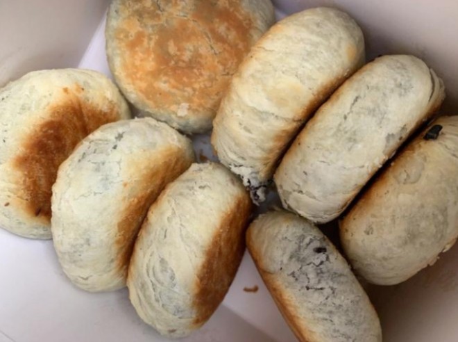華榮哲綠豆餅有綠豆、紅豆、紫薯、板栗、香芋5種口味。華榮哲綠豆餅,吃得是皮薄脆香酥,店里每日新鮮現(xiàn)做的餅,從揉面、包餡到壓餅,不間斷新鮮出爐。