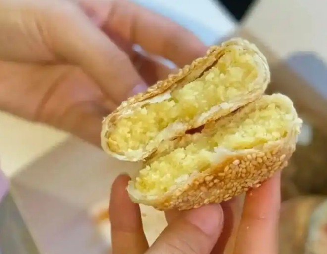 華榮哲綠豆餅輕輕一碰餅皮就已經(jīng)酥到狂掉渣,更不用說(shuō)入嘴的時(shí)候它有多酥脆!金黃誘人餅表,內(nèi)里的酥皮一層層薄如蟬翼,包裹著綠豆餡粉糯細(xì)膩味道清甜。
