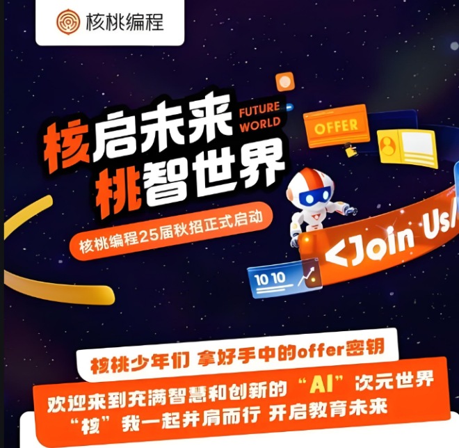 在編程教育日益重要的今天,核桃編程的教學體系不僅幫助孩子掌握了一項實用技能,更在實踐與競賽中培養了他們的邏輯思維、創新能力和抗壓能力。未來,期待更多孩子能走進核桃編程,在編程的世界里釋放想象力、鍛煉行動力,找到屬于自己的科創舞臺,憑借過硬的能力,在數字化時代的浪潮中從容前行、綻放光彩。