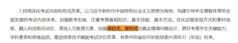 2026年1月22日,教育部印發《關于做好2026年普通高校招生工作的通知》明確提出高考命題要“優化試題呈現方式和素材選取,融入科技前沿動態,浸潤人文教育元素,加強項目式、探究式的真實情境問題設計”。