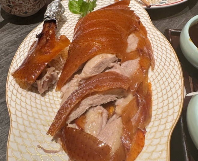 錦爐酥皮烤鴨都是經過精挑細選的,皮薄肉厚。鴨子采用吊爐烤制,外皮金黃酥脆,鴨肉鮮嫩多汁。再配上秘制醬料、配菜和薄餅,卷起來吃簡直太滿足了。烤鴨的皮特別酥脆,一咬嘎吱嘎吱響,鴨肉又香又嫩。配上甜面醬、蔥絲和黃瓜卷在餅里,味道簡直絕了,一口接一口停不下來。烤鴨的皮入口即化,搭配上白糖,甜而不膩,讓人回味無窮。烤鴨本身的味道也非常出色,搭配上春餅,每一口都是滿滿的幸福感。