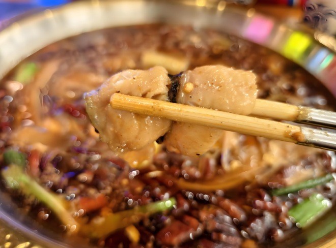 辣得爽糊辣魚(yú)將食材放到鍋底煮上一會(huì)兒,每一條黃辣丁都在鍋里面散發(fā)它們的魅力。雪白通透,肉質(zhì)滑軟,一口下去幾乎不用嚼就能滑進(jìn)喉嚨。新鮮魚(yú)肉肉質(zhì)肥厚,口感層次豐富,越品越香,多吃不膩。