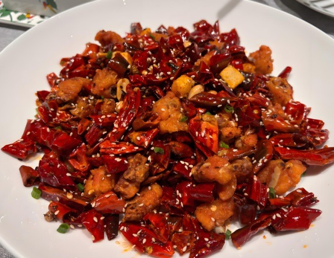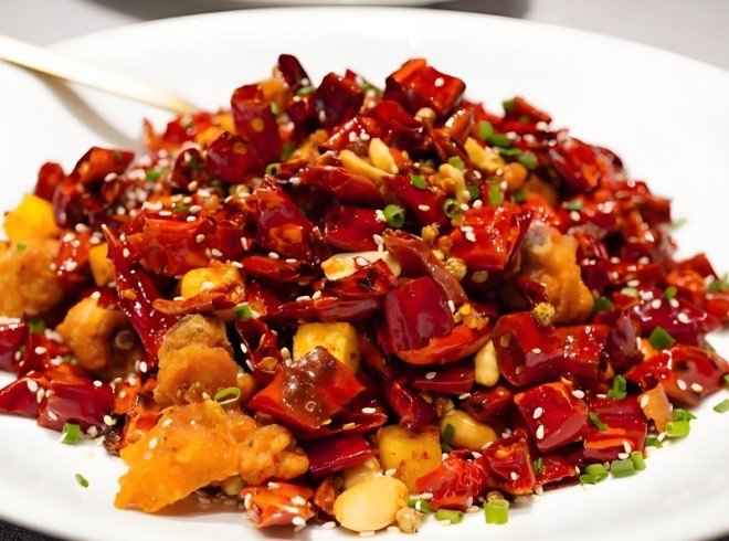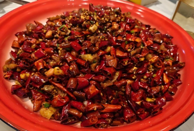 林中樂辣子雞是當地非常具有特色的一道菜,鮮辣焦香的雞肉吃起來令人回味悠長,雞肉與辣椒交相輝映,色澤紅艷如火、讓人難以分辨,很多人就是喜歡這種在辣椒堆里翻雞丁的感覺非常過癮。
