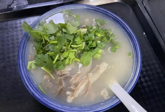 老邱羊肉湯在選料上特別講究,一般只用本地養(yǎng)的10千克左右的幼小山羊。佐料上,除用白芷、陳皮等十幾種中藥外,特別是要加入本地產(chǎn)的映山紅花椒,用此除去羊的腥膻味。先文火細(xì)燒,讓盡可能多的蛋白質(zhì)釋放于湯中。