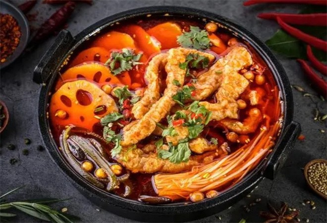 冒菜火鍋,繼承了重慶火鍋麻辣鮮香、味美醇厚、湯色紅亮、回味悠長(zhǎng)的特點(diǎn),又發(fā)揚(yáng)了烹菜保留菜品原味、不破壞菜品內(nèi)在營(yíng)養(yǎng)成份的優(yōu)勢(shì),既美味又營(yíng)養(yǎng),真正綠色餐飲。