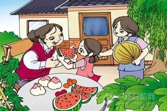 周末,媽媽帶著冬冬去外婆家,外婆準(zhǔn)備了好多好吃的。白里透紅的桃子、鮮美多汁的西瓜……外婆讓冬冬吃,冬冬拿起一塊兒西瓜遞給外婆,說:“外婆,你先吃。”