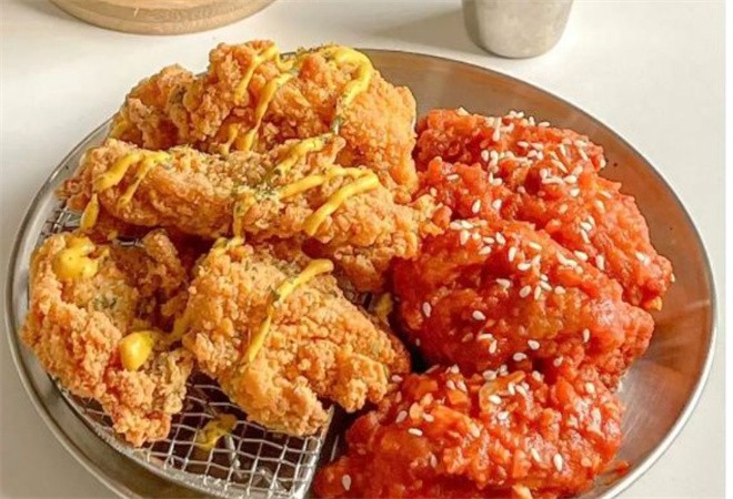 韓式炸雞的特點就是搭配解膩增香的各式醬料。新出爐的炸雞,還散發著油炸的香味,表面的外皮金黃酥脆,內里的雞肉鮮滑依舊,彈嫩不減,咬一口還能看到雞肉的紋路、滿溢的汁水。搭配上韓式炸雞的靈魂醬料,越吃越上癮。酥脆金黃的外皮,鮮嫩多汁的雞肉,每一口都鮮香滿足。當然,原味炸雞也可搭配多種醬料食用。蜂蜜芥末炸雞算比較新式流行的口味,視覺沖擊感很強,明艷的黃色特別吸人眼球。它的口感清新又獨特,除了微甜的蜂蜜滋味,還融合了淡淡的芥末香氣。