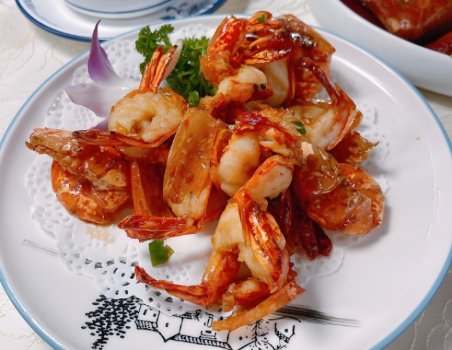 小煵記深圳本地菜的豉油皇大蝦這道可以說是店內的頂梁柱和頭牌了,基本上每桌必點。選用的是新鮮的海蝦,肉質還是比較彈牙爽口的。經過油炸后蝦殼也變得十分酥脆。采用了豉油皇的做法,上桌的時候能夠聞到一股非常誘人和濃郁的醬香氣。可以說如果有一碗白飯在手邊,這道大蝦會是一道非常下飯的菜品。