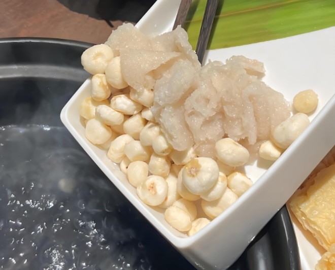 椰鮮笙竹笙椰子雞的雞肉質(zhì)鮮美滑嫩,煮的再久也不怕失去原有的味道,海南空運(yùn)而來(lái)的椰子,汁多液甜,久煮椰汁醇厚,椰肉清甜,不僅可以增香增鮮,還能美容養(yǎng)顏!
