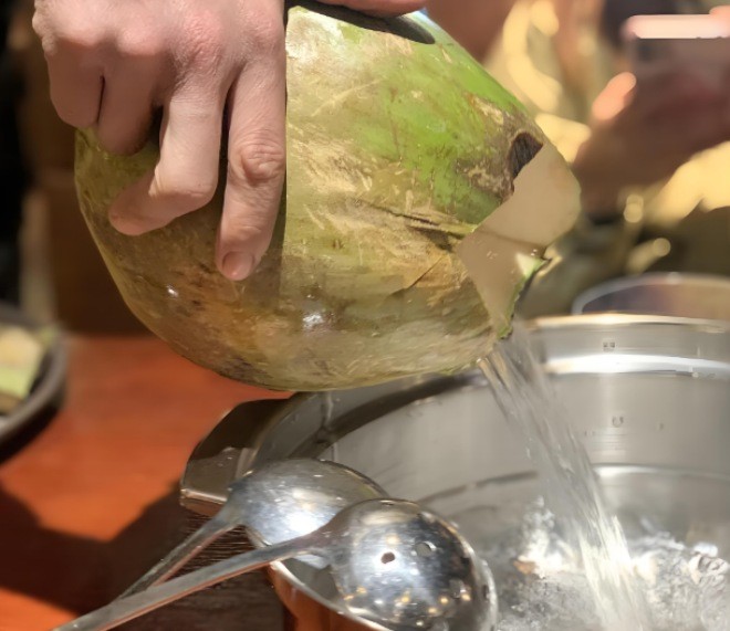 椰鮮笙竹笙椰子雞堅(jiān)持選用真實(shí)的海南青皮椰現(xiàn)砍現(xiàn)倒,承諾絕不使用兌制椰子水,每家店門口都會(huì)設(shè)置有砍椰亭,堅(jiān)持把新鮮椰子帶皮直達(dá)店內(nèi),當(dāng)面現(xiàn)砍,無(wú)添加下鍋。