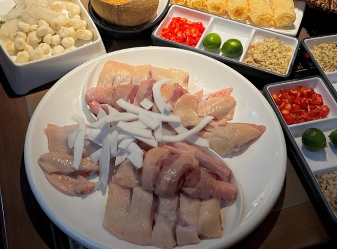 海南文昌雞的皮薄、肉嫩、骨酥、脂肪少,這樣的靚雞才經(jīng)得住赤裸裸的原味考驗(yàn)。椰鮮笙竹笙椰子雞現(xiàn)砍椰子+海南文昌雞,一口溫潤(rùn)滋補(bǔ),暖胃又暖心,竹笙椰子雞、原味椰子雞、一級(jí)臘味煲仔飯、黑雞縱菌、椰香斑斕西米糕、爆漿糍粑、涼拌拍黃瓜、五指毛桃鍋底、秒涮響鈴卷、鮮冬菇、手打墨魚滑、筋道柳葉面、金紗嫩魚腐、臻味蟹柳、石橄欖鍋、茶水蘸料等菜品,滿足食客的需求。葷素涮菜,美味涼菜俘獲你的胃。