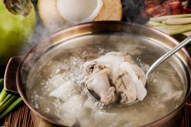 精選食材:椰皇四季椰子雞精選海南高等白胡椒、野生菌類、玉竹、枸杞、花參等十余味中草藥,香氣四溢,配合養生靈芝煲的茶水,養生開胃去油膩。綠色走地雞,原汁原味豬肚雞湯,順喉滑入,暖意濃濃,遁入心脾。