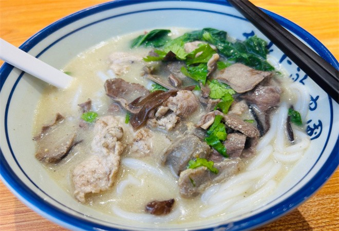 御品鮮原味湯粉是用筒骨湯熬煮好后,有客人點餐時,再用湯水現(xiàn)滾切片豬肉及豬雜,原味湯粉的湯看起來非常清澈,聞起來十分香甜。既有湯喝,也有肉吃,還有骨頭啃,實在過癮。尤其豬肉片吃起來也非常嫩滑,仔細(xì)品味,還能品出淡淡的甜味。