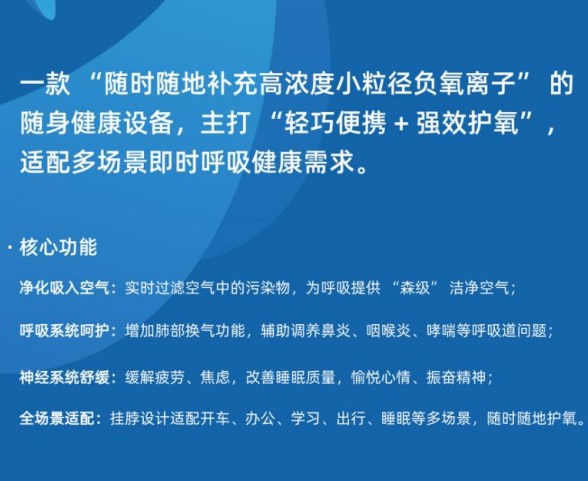 公司創立至今,不斷開拓創新,專長于負離子技術領域的研發,尤其關注高濃度小粒徑的負離子,為消費者研發出科技領先、設計獨特、性能優越的高濃度負離子調氧儀。